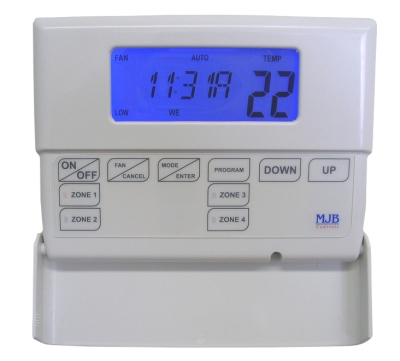 intelligent microprocessor 7 Day Programmable Thermostat with Zone Control which has been specifically designed for the residential split ducted market. Features such as 3 speed fan control, HEAT / COOL / AUTO functions as well as control for up to 4 zones are standard. A host of installer and user programmable features are configured directly from the large LCD and are nothing more then a few button presses away (No more setting numerous and confusing dip switches)